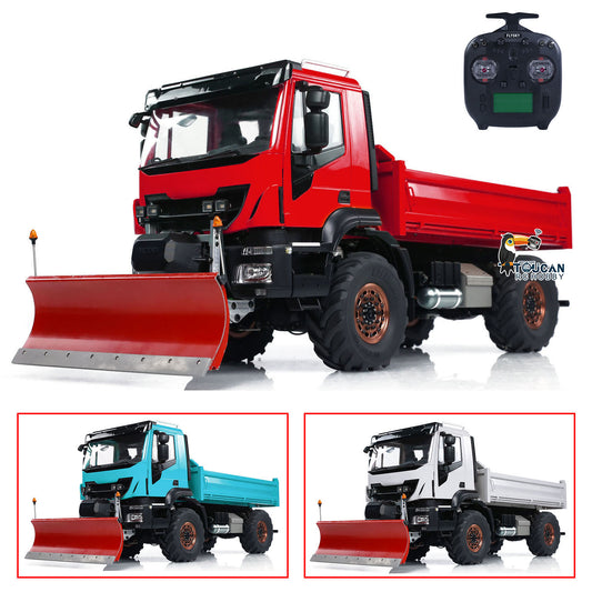 Metal 4*4 1/14 RC Hydraulic Dumper Trucks with Snow Shovel Remote Control Tipper Cars LED Light Sound FlySky ST8 Radio System
