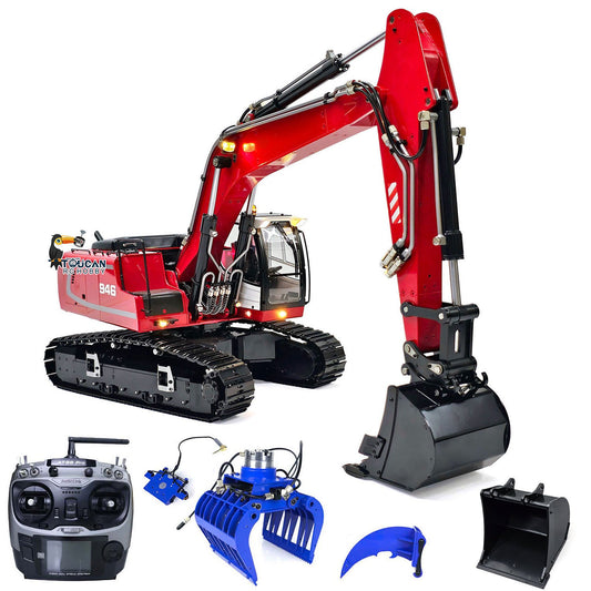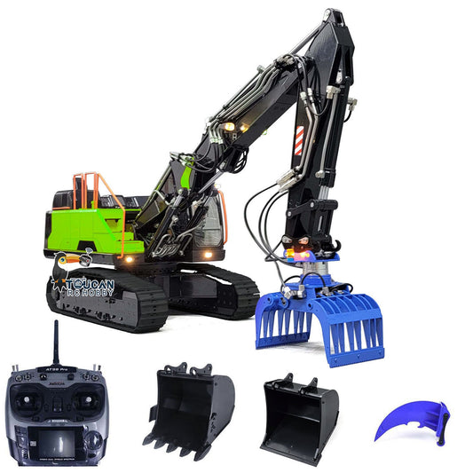 MTMODEL 1/14 946 2 Arms Metal RC Hydraulic Excavator Wireless Controlled Construction Machine Model Clamshell Bucket Ripper