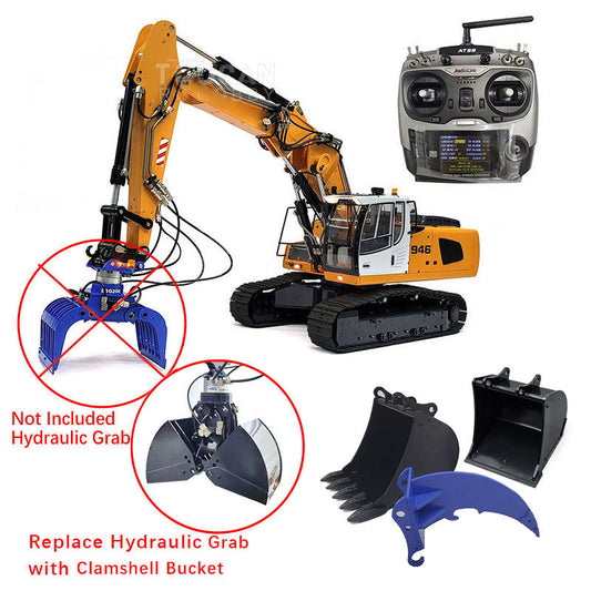 MTMODEL 1:14 946-3 Metal 3 Arms RC Hydraulic Excavator Remote Control Heavy Machine Digger Model Tiltable Clamshell Bucket