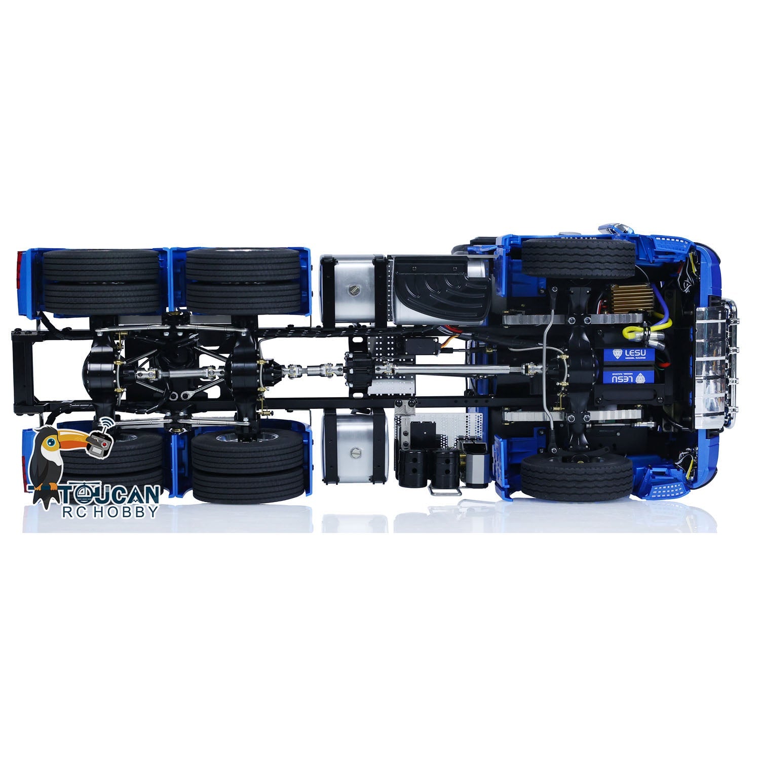 1. LESU 6x6 Metal Chassis: The truck features a sturdy LESU 6x6 metal chassis with precision-crafted components, including the gearbox, tractor, wheel hubs, suspension, axles, and drive shafts. The truck's axle is equipped with LESU's Q-9115 flange axle for superior performance.