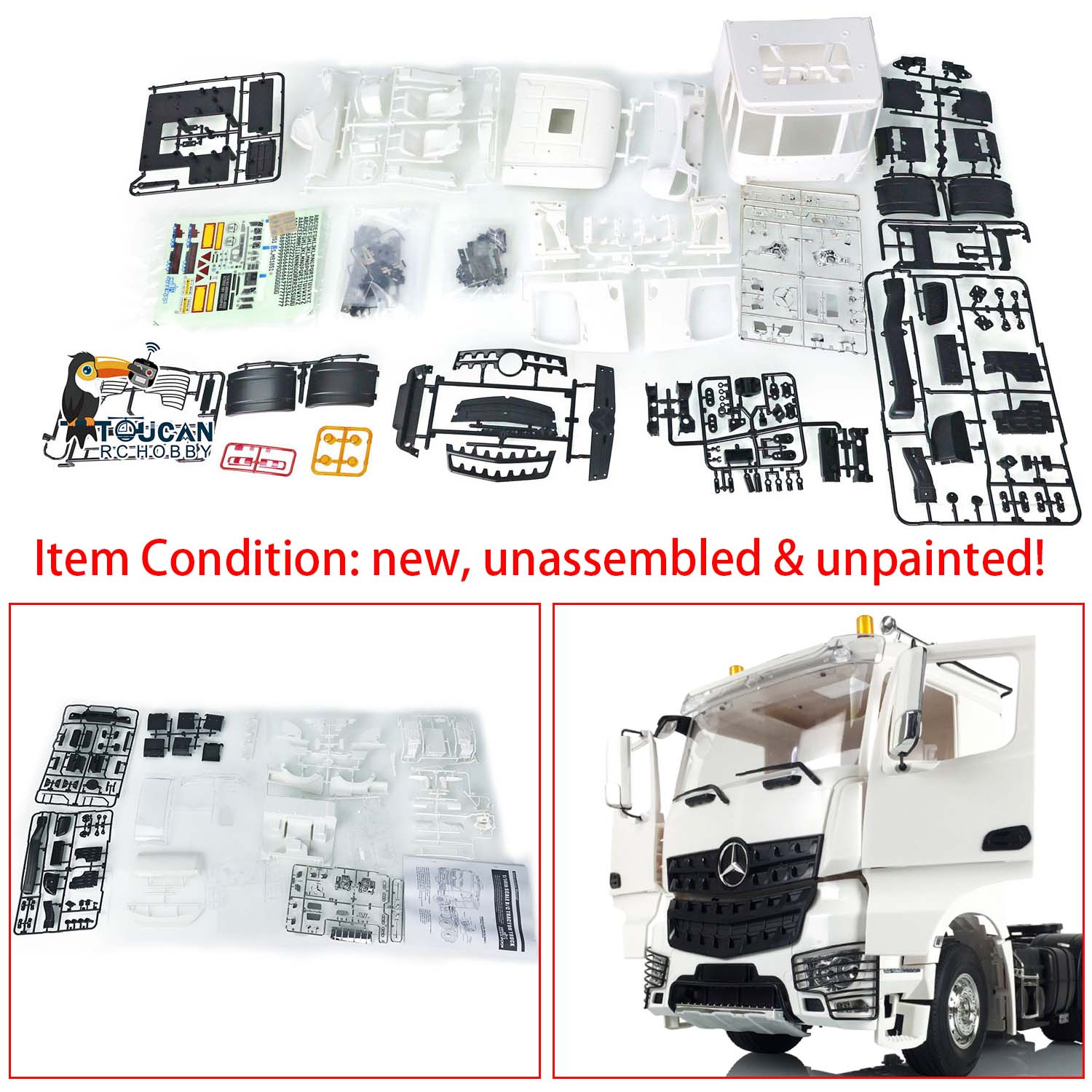 TOUCAN Plastic Cabin Set for DIY 1/14 RC Tractor Truck Toy Remote Controlled Car DIY Hobby Model 3363 Openable Door