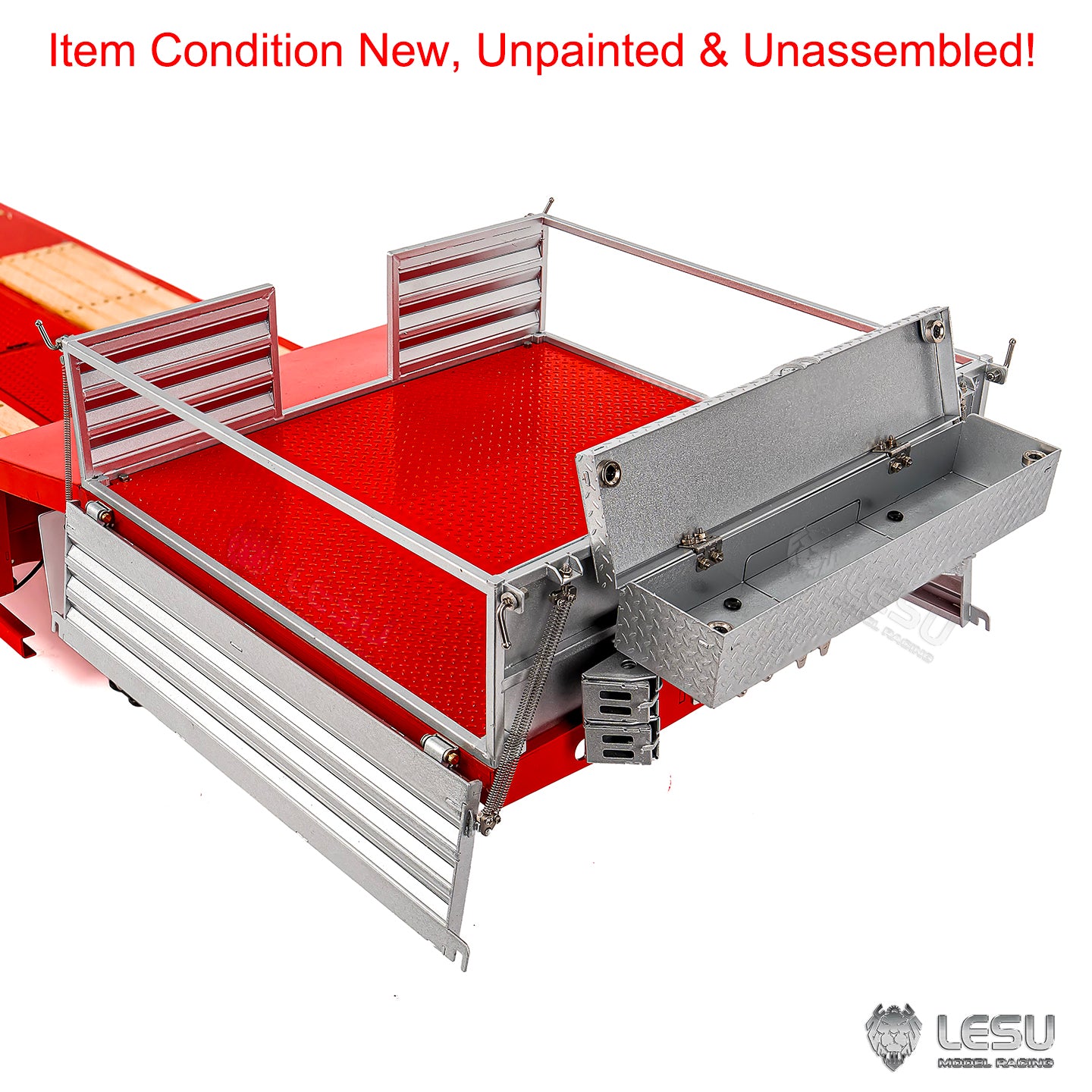 4. The trailer deck is decorated with wooden pedal trim parts, fixed by simulated wire racks. It also has simulated toolboxes on both sides and stainless-steel side rails for added durability and authenticity.