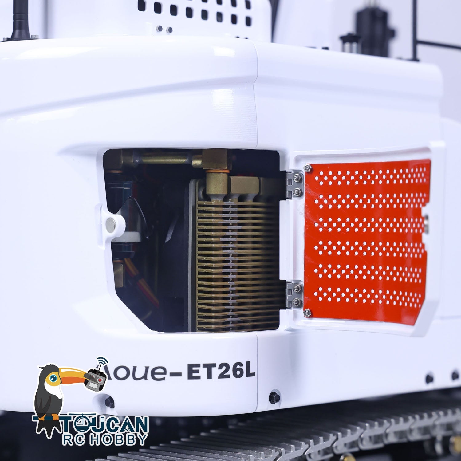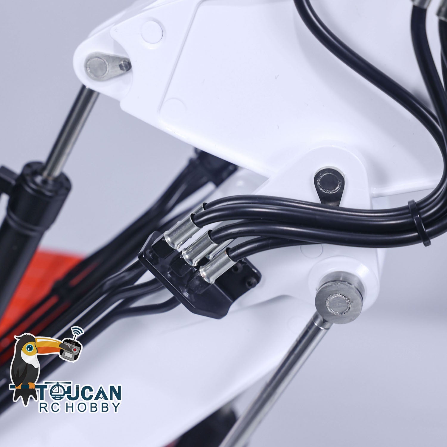 4. Includes a quick-release coupler and quick connectors for easy setup and customization of the excavator model.