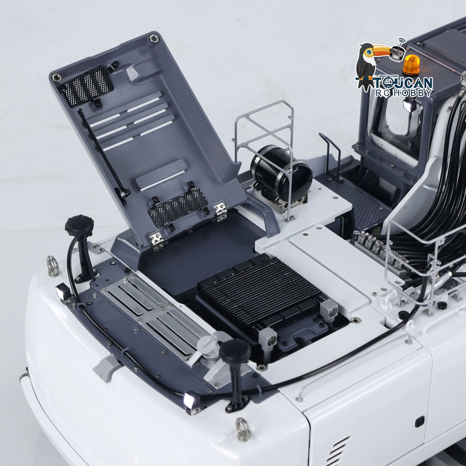 13. It comes with a quick-release for all hydraulic excavator attachments, with a 5-channel quick-release oil circuit and an added return oil pipeline for hydraulic motor attachments. It allows for free swapping and switching of different attachments and is compatible with all attachments from the LESU AC360 excavator, offering rich playability.