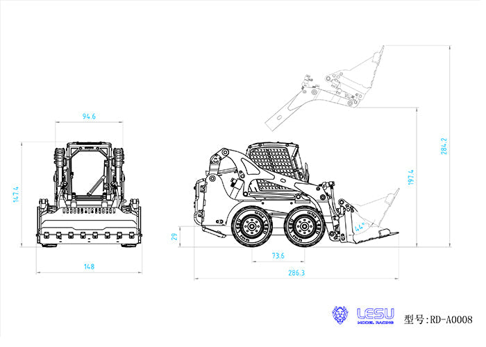 LESU 1/14 Wheeled Skid-Steer Hydraulic RC Loader Aoue LT5H I6S Radio Controller