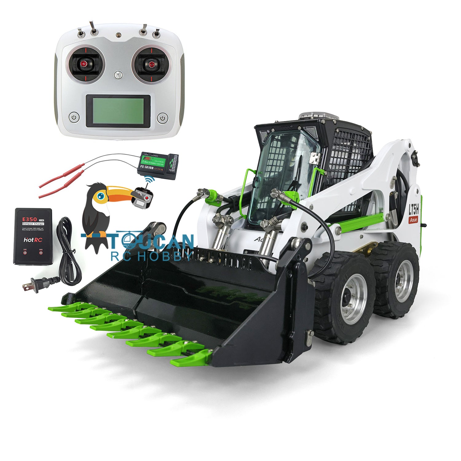LESU 1/14 Aoue LT5H Wheeled Skid-Steer Hydraulic RC Loader Remote Control Construction Vehicle I6S Rotating light
