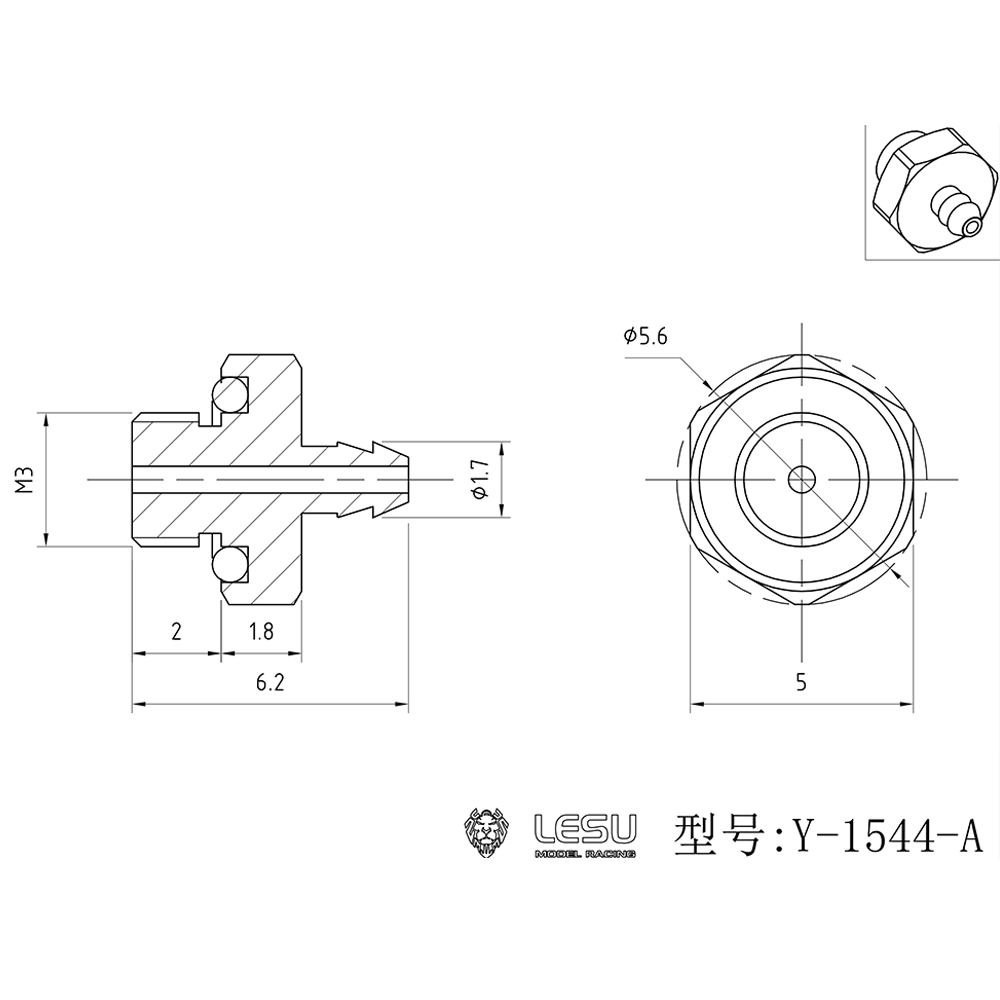 LESU M3 Straight Nozzle Bent Nozzle Stainless Steel for 2x1mm Hydraulic Oil Hose RC Trucks