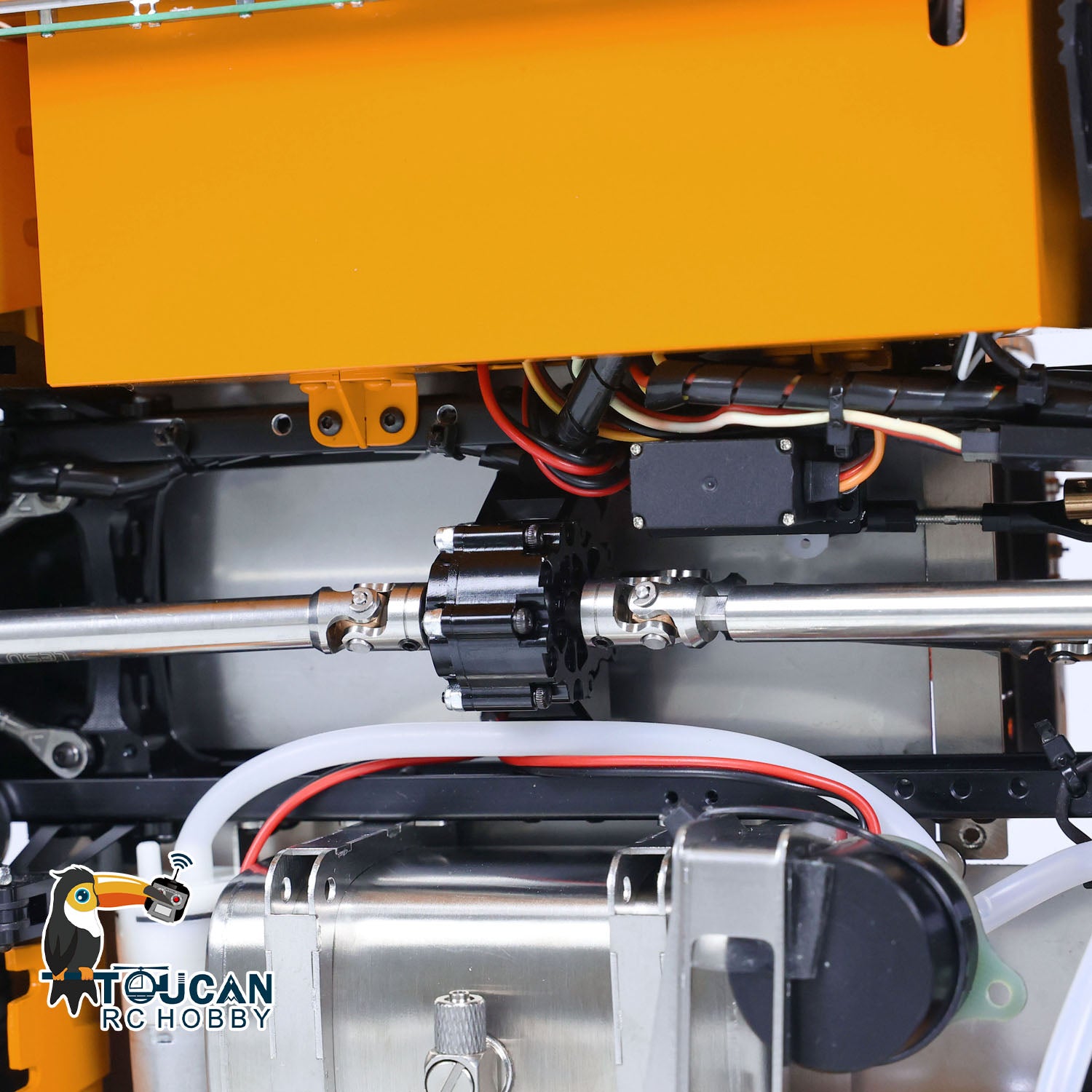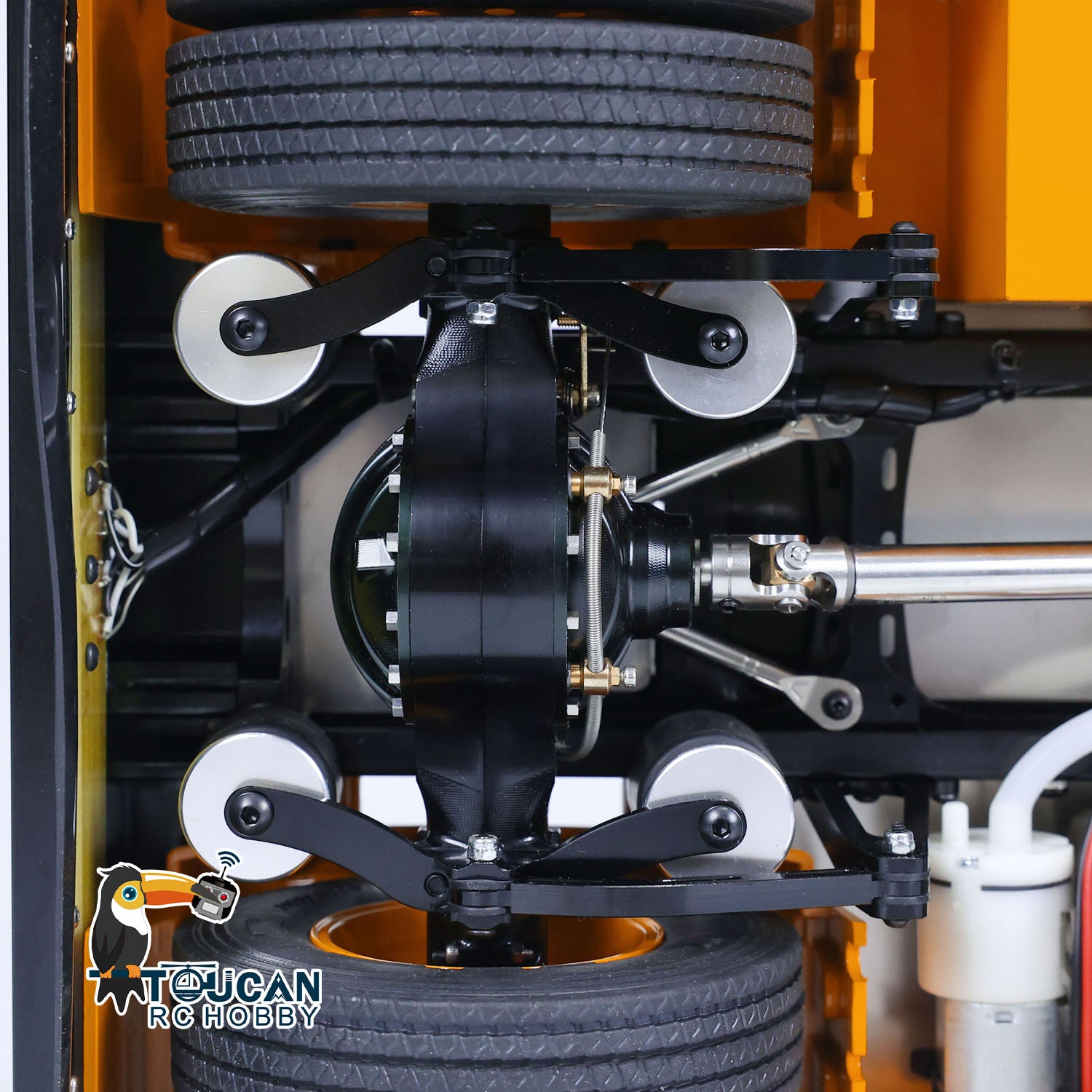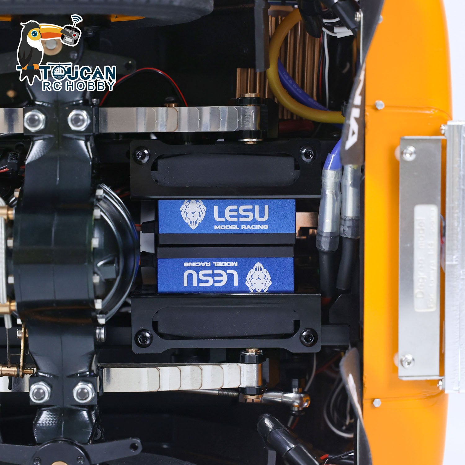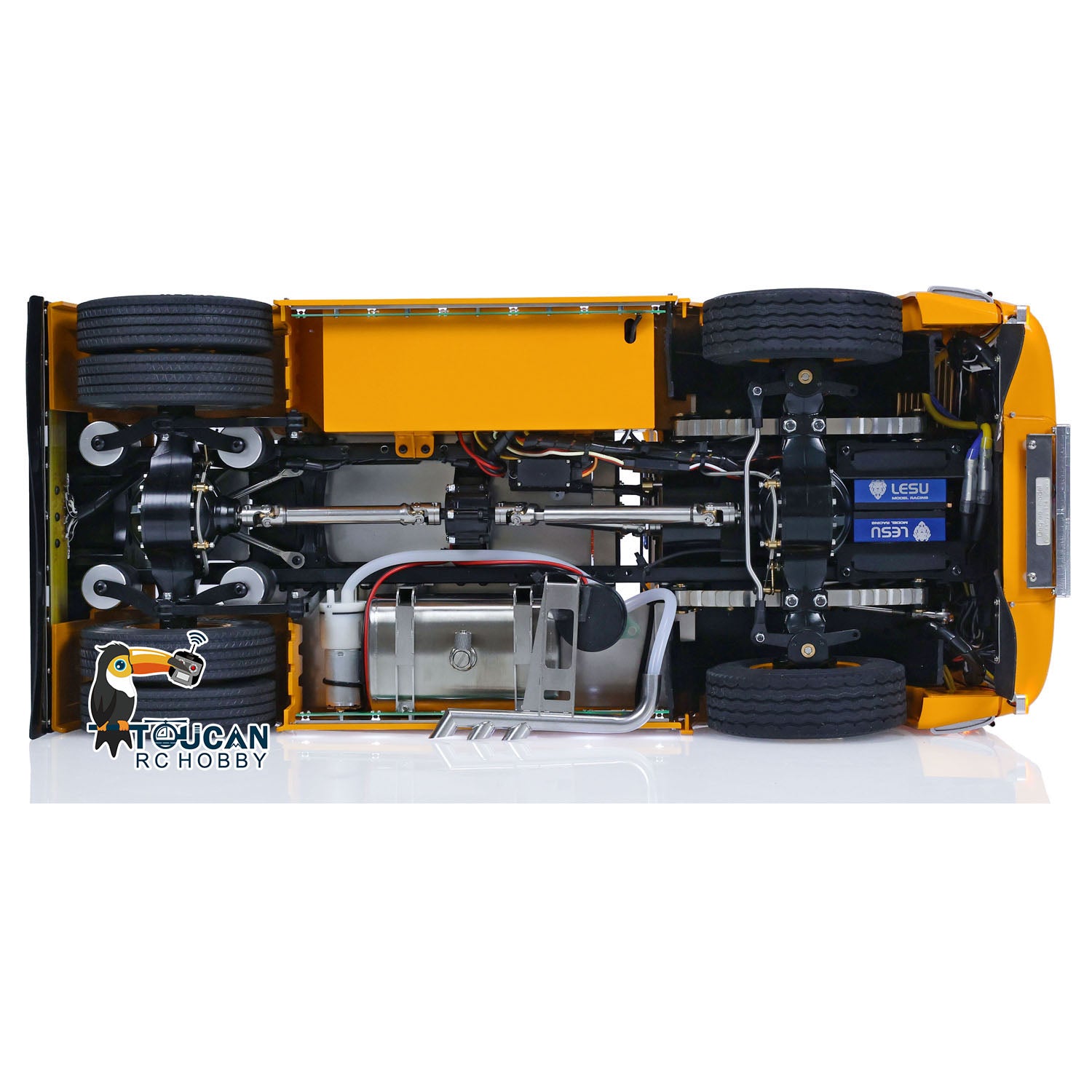1. Metal Chassis, Axles, Drive Shafts, and Hubs: The RC tractor truck model features a robust LESU metal chassis that enhances durability and realism. All essential components like the axles, drive shafts, and wheel hubs are constructed using high-quality metal for added strength.