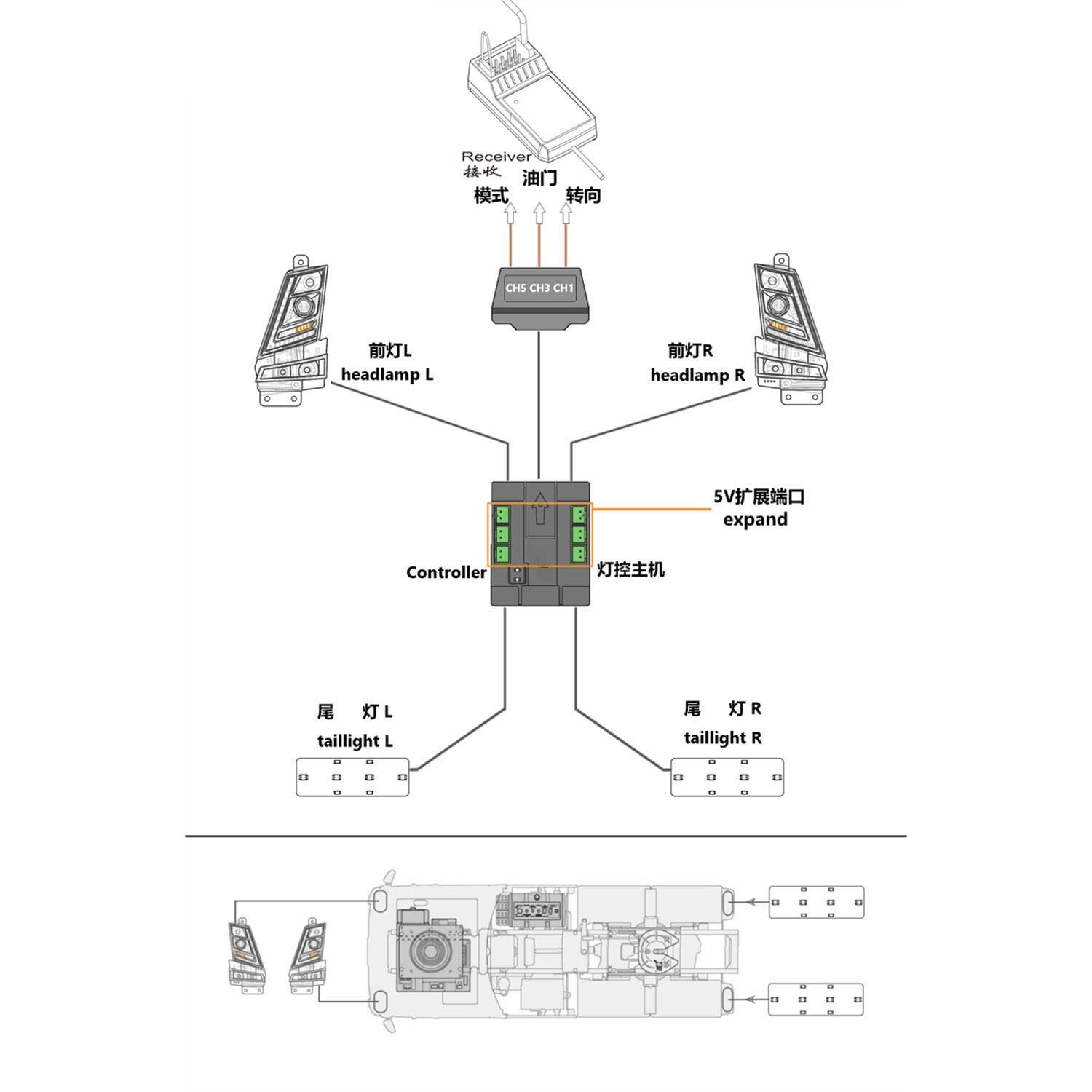 5V Light Unit for DIY 1/14 Tamiya FH16 750 RC Tractor Truck 56360 56362 Lorry