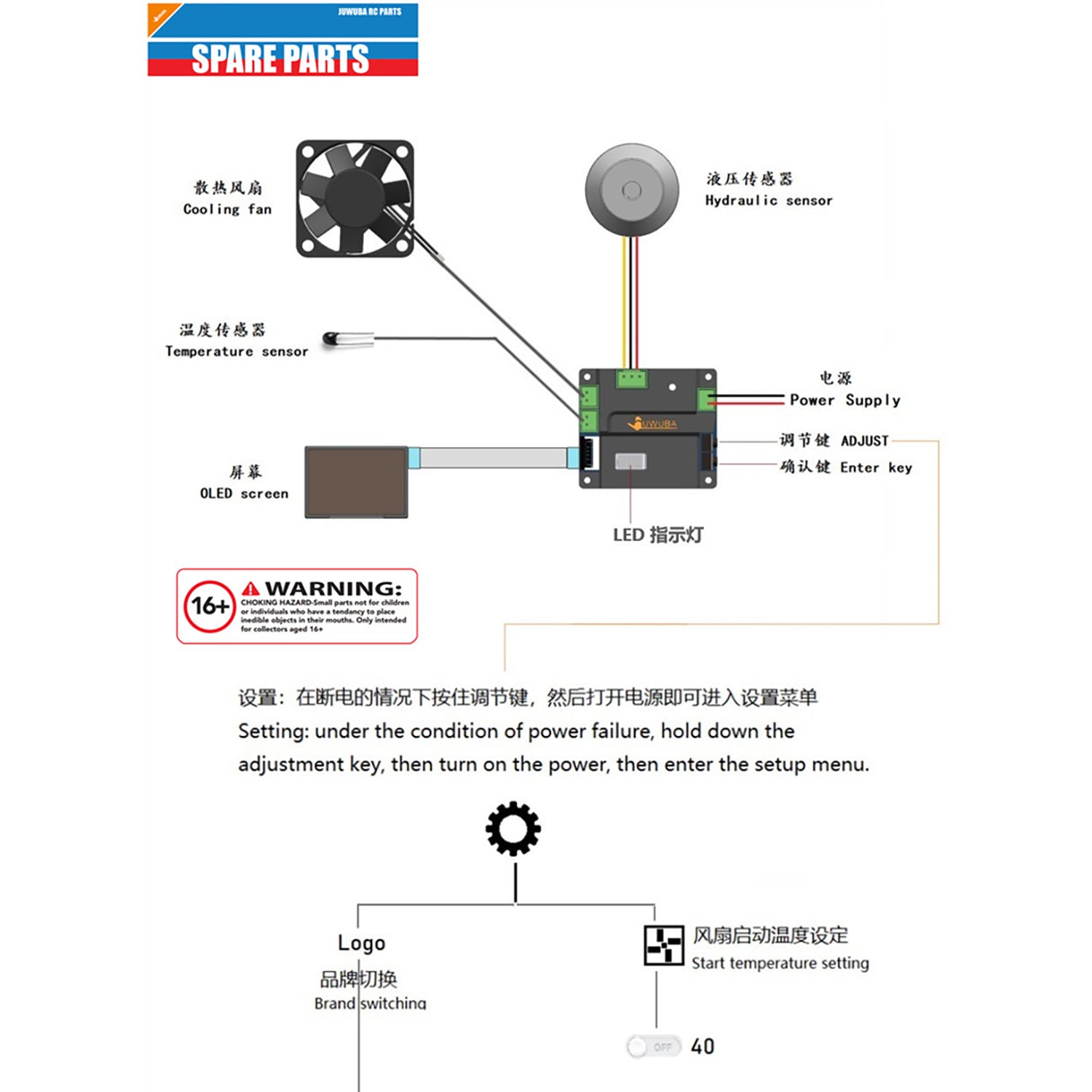 Multimedia Display Screen Current Voltage Temperature Pressure Usage Time Brand for DIY 1/14 RC Tractor Truck Dumper Tipper
