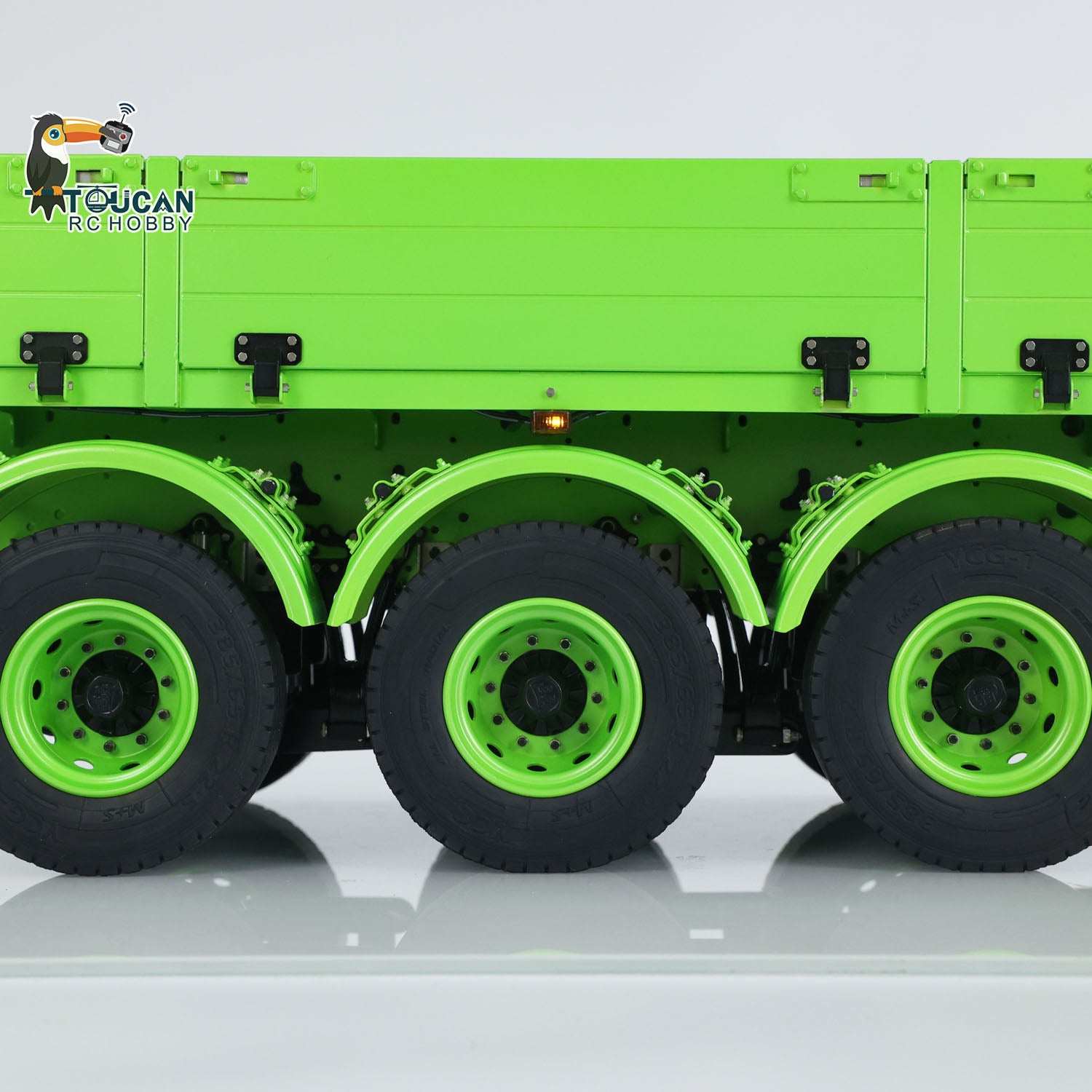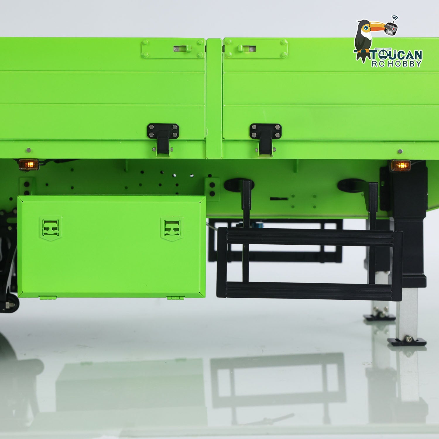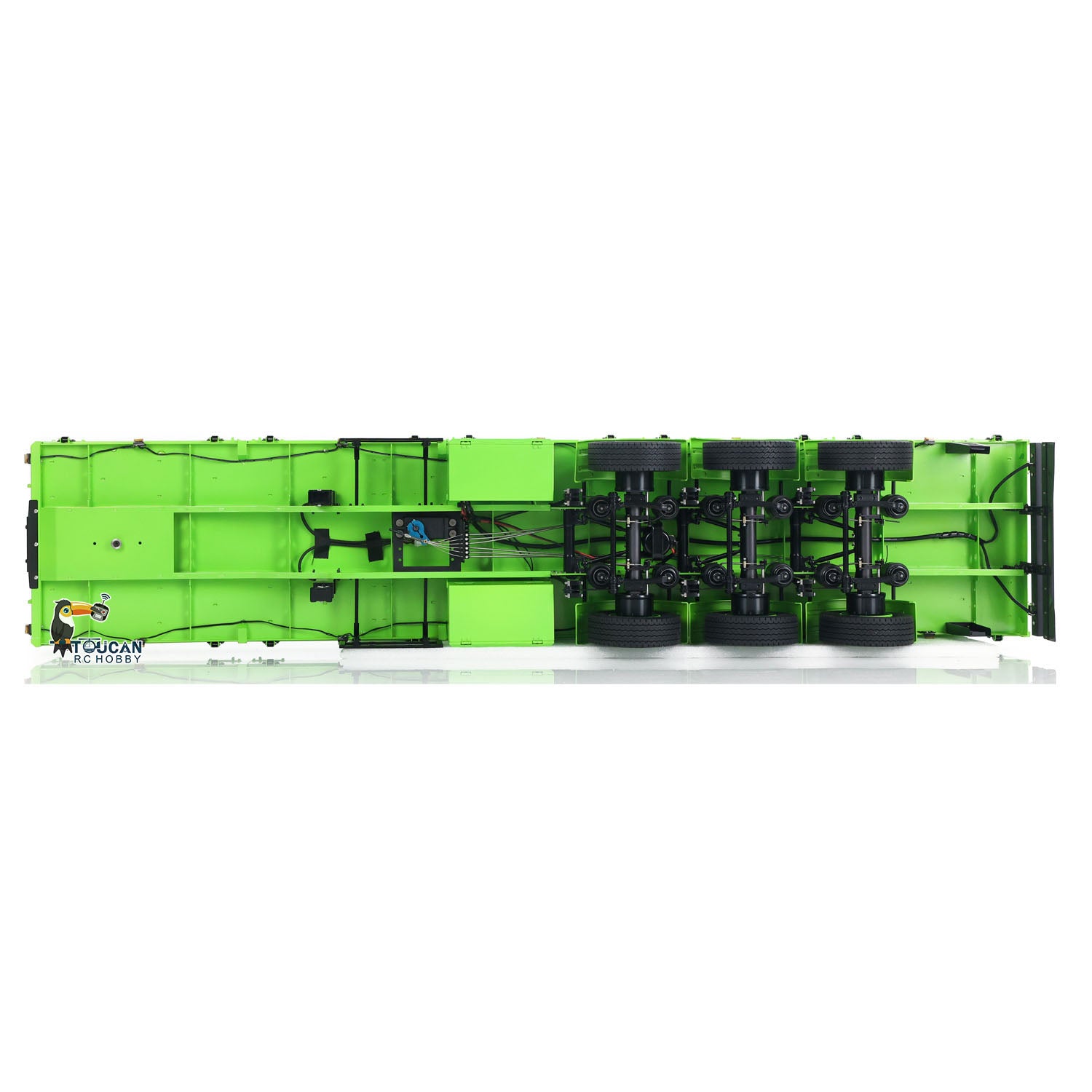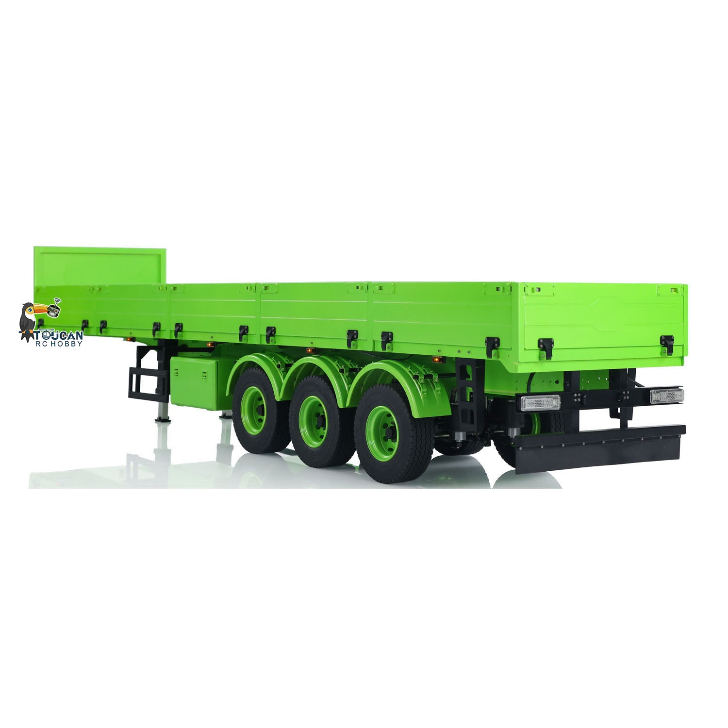 1/14 3-Axle Trailer comes with manual lifting legs, some lights, the first axle with electric lifting.