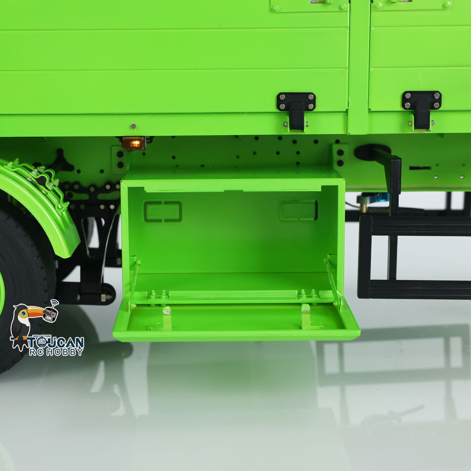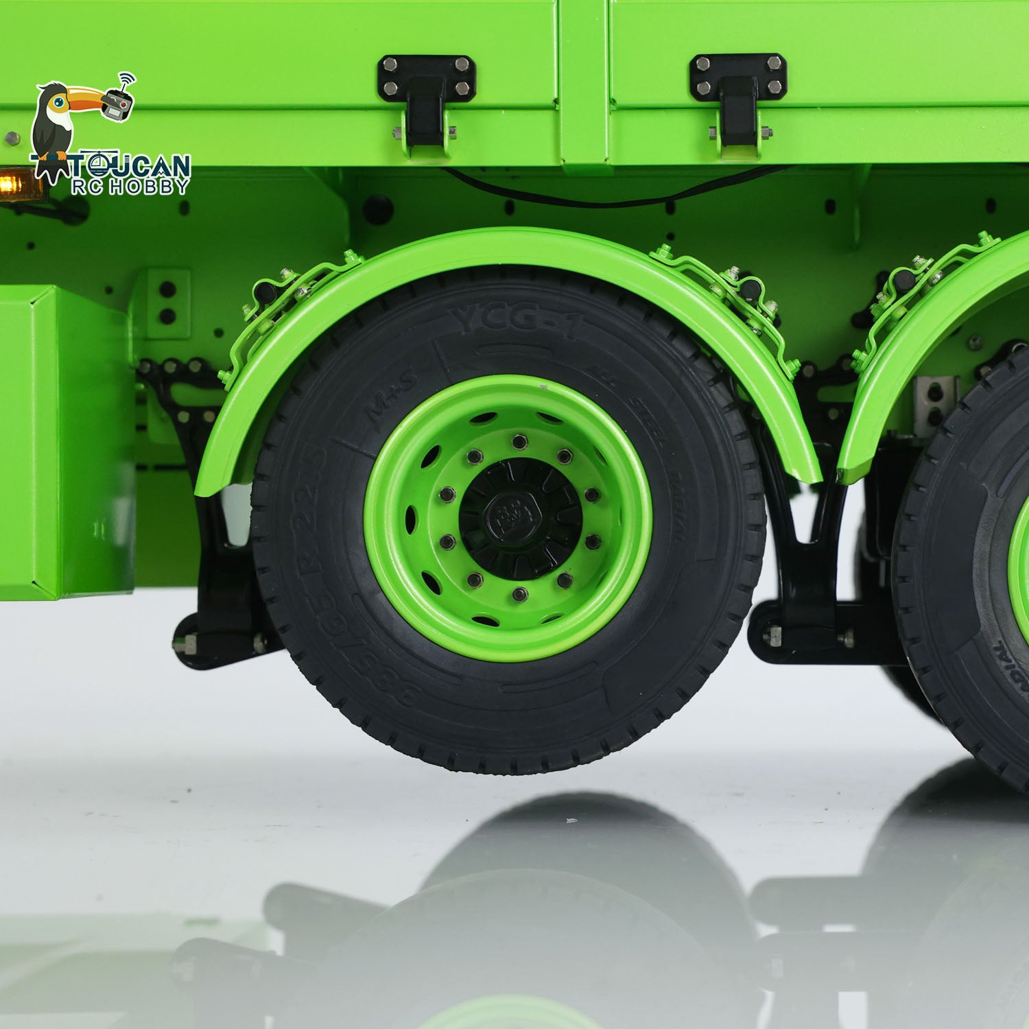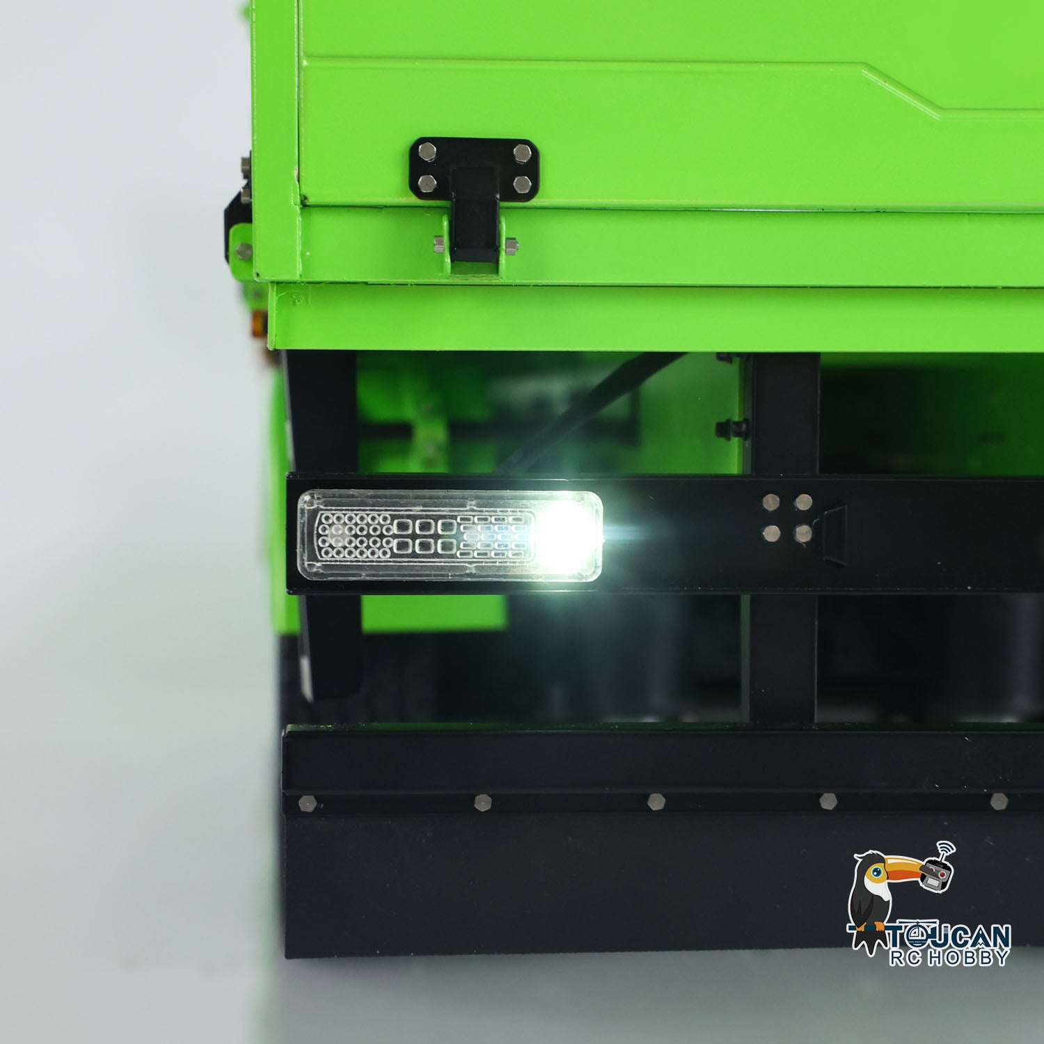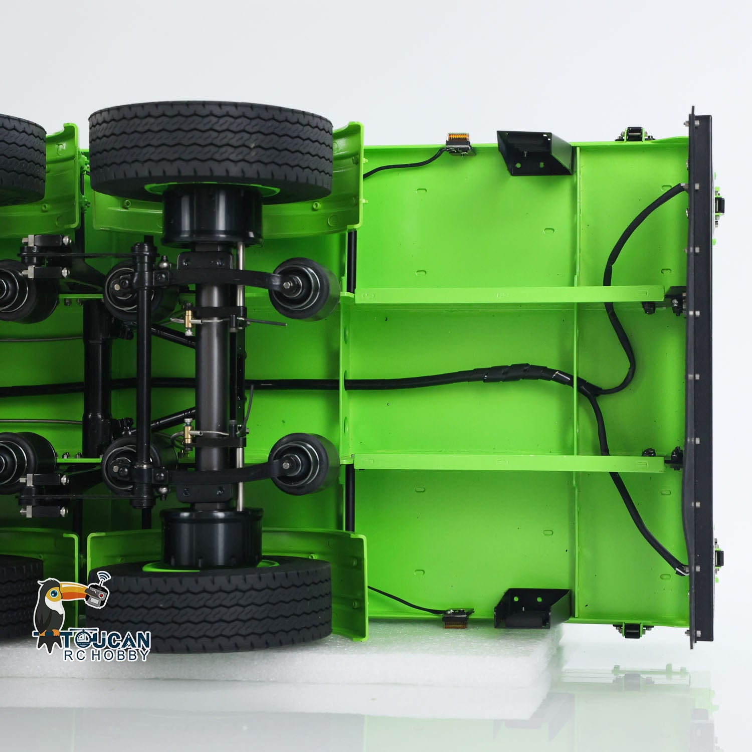 1/14 3-Axle Trailer comes with manual lifting legs, some lights, the first axle with electric lifting.