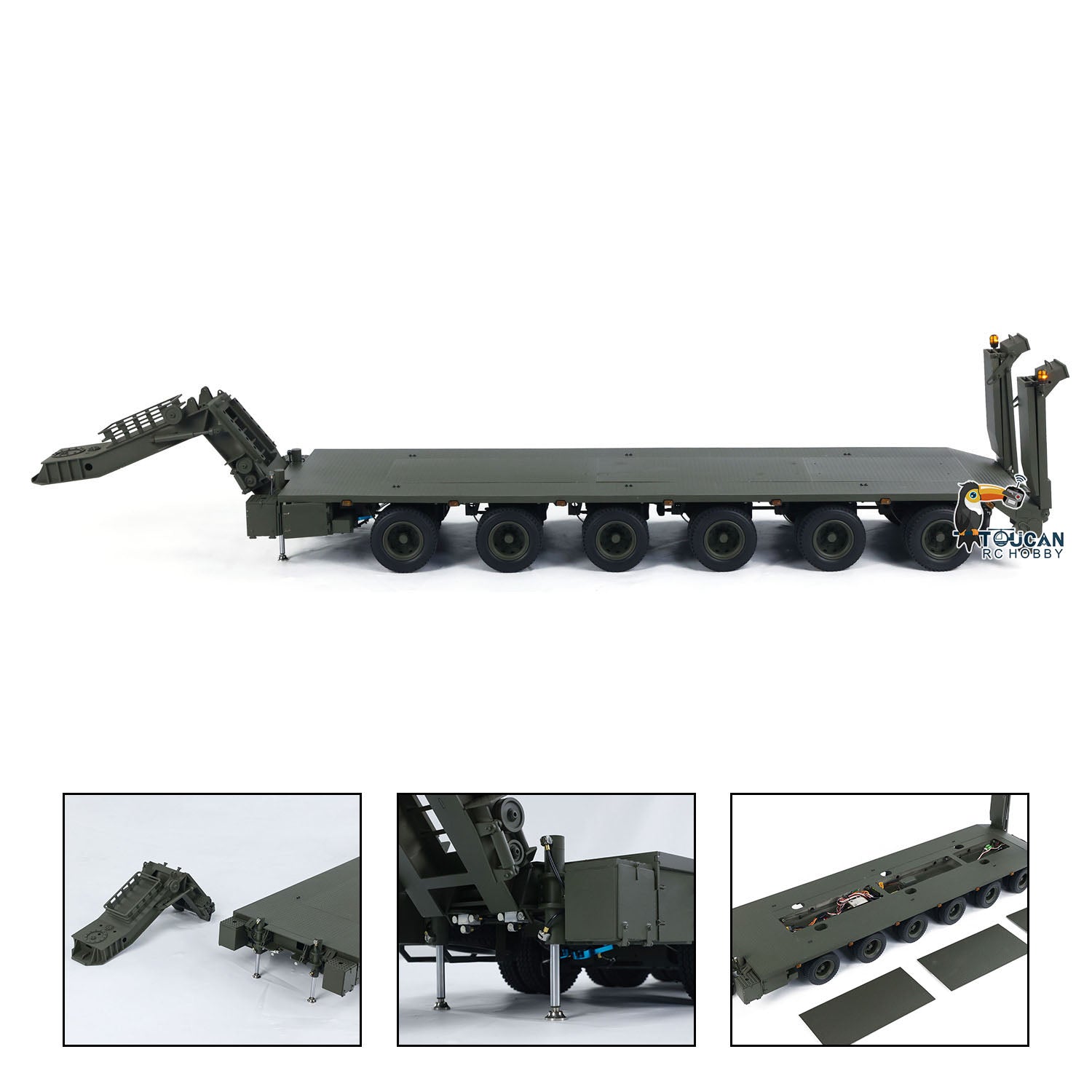 Metal RC Hydraulic Semi Trailer for 1/14 Elefant FAUN SLT-56 Tank Transporter